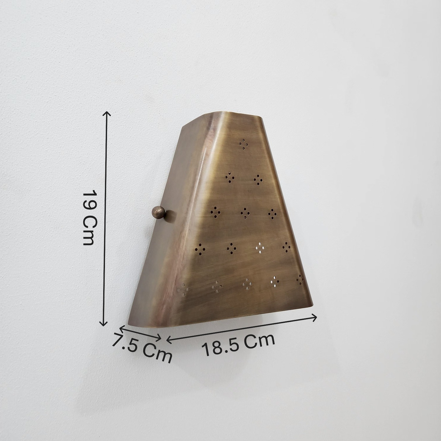 Alpha WL-02 Modern Wall light features a modern perforated metal design that creates a warm and elegant ambient glow. Crafted with a premium brass finish, this decorative wall lamp is perfect for bedrooms, living rooms, hallways, and luxury interiors. Its contemporary geometric shape adds sophistication while providing functional accent lighting for any space.