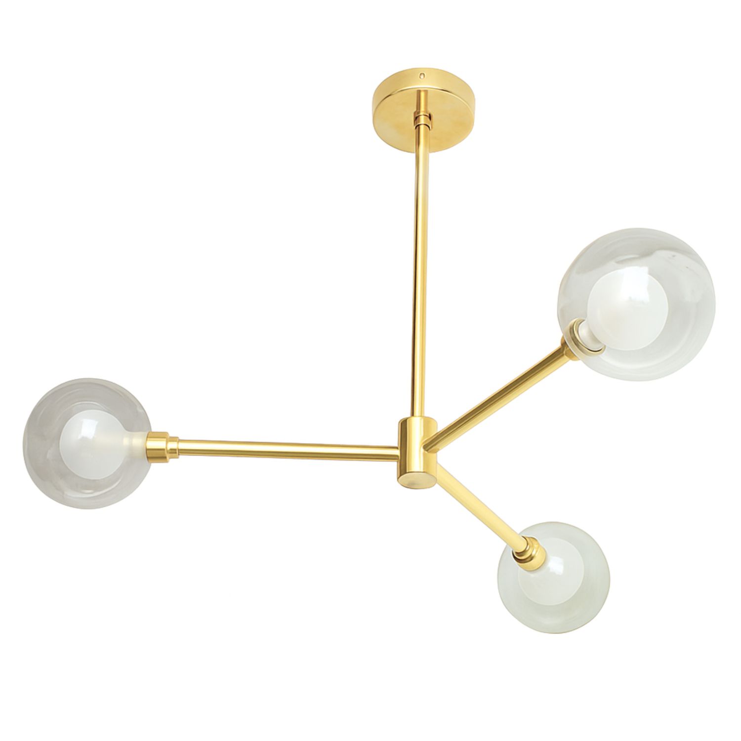 Add a clean, modern statement to your space with this Modern Brass Globe Chandelier (3-Light). Featuring a sleek brass frame and elegant glass globe shades, this ceiling light brings a warm, balanced glow and a premium designer look to any room.